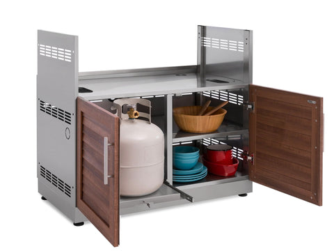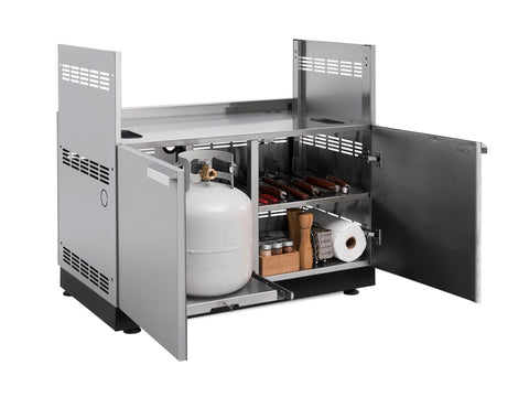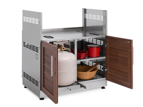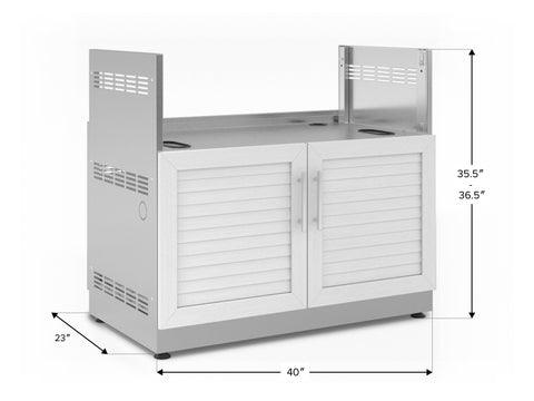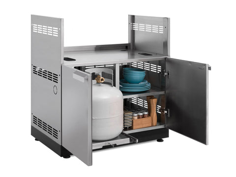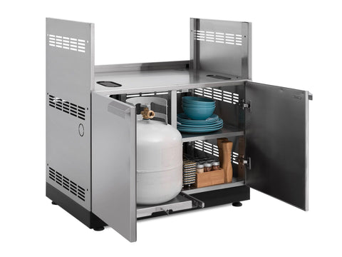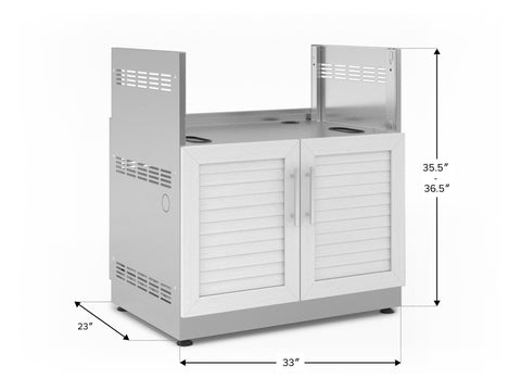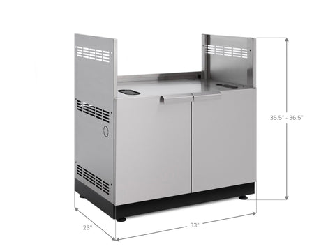 Add function and storage to your cooking space with the NewAge Gas Grill Cabinet. The 304 stainless steel construction combines weather-resistant durability with the strength to support heavy-duty grills. Large doors with soft-close hinges provide quick access to all your grilling supplies. Changing the propane tank is easy thanks to a pull-out tank tray, while an integrated lock keeps it securely in place. Height-adjustable levelers ensure your cabinet and grill will be perfectly level on any surface. NewAge Grill Cabinets are engineered to accept other brands of insert grills as well. The 40 in. Grill Cabinet accommodates gas grills with widths from 34.5 in. to 40 in. The 36 in. Cabinet accepts grills ranging from 31 in. to 36 in. wide. And the 33 in. Cabinet fits grills from 28 in. to 33 in. wide. Upgrade your backyard living space, with NewAge Products Outdoor Grill Cabinet.