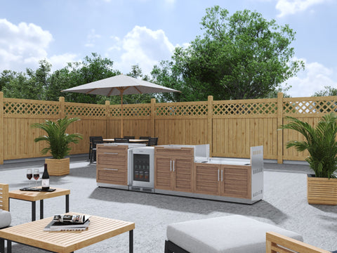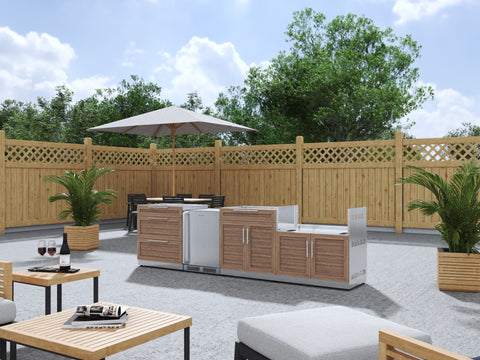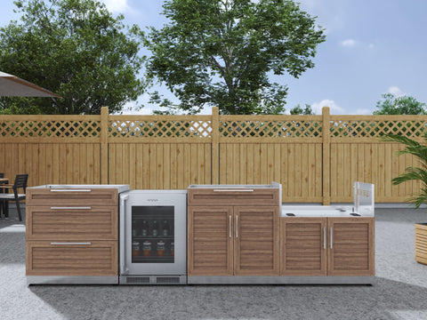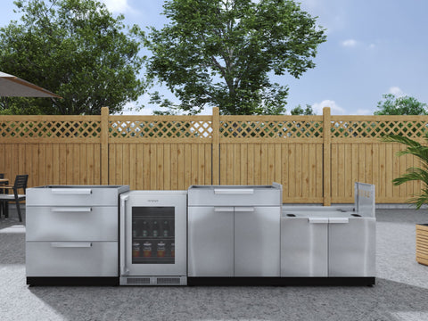 Get grilling, and maximize your backyard storage space, with Outdoor Kitchen cabinets. Constructed from restaurant-grade, 304 Stainless-Steel, with reinforced double-wall doors, these cabinets are weather and corrosion resistant, for all-season durability. The 3-Drawer Cabinet has an adjustable upper drawer dividers for cutlery and tool organization, with two extra deep drawers, perfect for storing all your hosting essentials. Designed with your convenience in mind, our outdoor kitchen cabinets come with fully-assembled 304 stainless steel frames for easy installation. Gas Grill Cabinet offers convenience with a pull-out tank tray and compatibility with various insert grills. Furthermore, the under-counter fridge, crafted from durable stainless steel, showcases a sleek design with a stainless-steel door, touch-control LED display, automatic LED lighting, adjustable shelves, and legs. Offering 5.1 cubic feet of storage space, its robust stainless-steel door not only enhances durability but also adds a modern aesthetic to any outdoor kitchen setup. The NewAge Products Outdoor Kitchen cabinets provide a clean, professional look that will get your backyard organized.