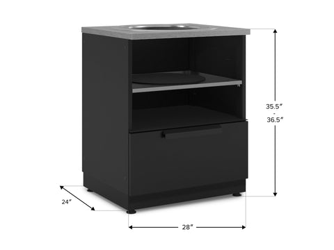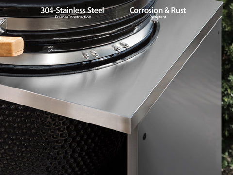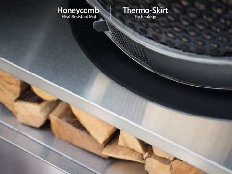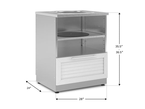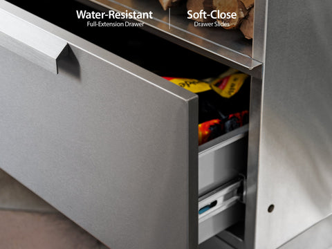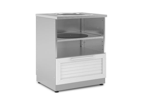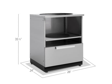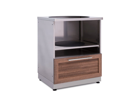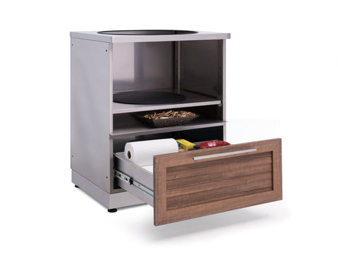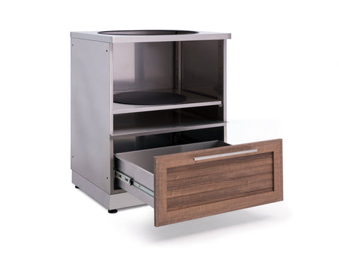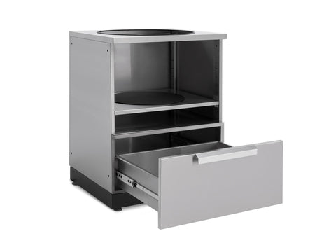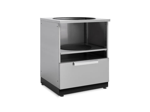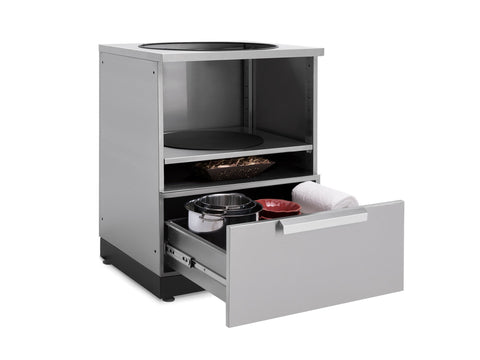 The Outdoor Kitchen Kamado Cabinet easily supports most ceramic BBQs, with plenty of additional storage space and unique features to elevate your culinary techniques. This cabinet can accommodate multiple sizes of ceramic Kamado BBQs and has a honeycomb, heat-resistant silicone mat to disperse the heat evenly, keeping the shelf cool, even at extreme temperatures. This cabinet is for use with compatible ceramic Kamado Grills only. Check your Kamado product manual for compatibility and safety requirements. Constructed from restaurant-grade, 304 stainless steel, with reinforced double-wall doors, this cabinet is built for all-season durability. The extra-deep weather-resistant drawer is a great space for storing wood chips, charcoal and serving platters under your Kamado. Soft-close drawer slides allow it to close gently, reducing slams while you’re barbecuing. Upgrade your barbecuing experience with the NewAge Products Outdoor Kitchen Kamado Cabinet.