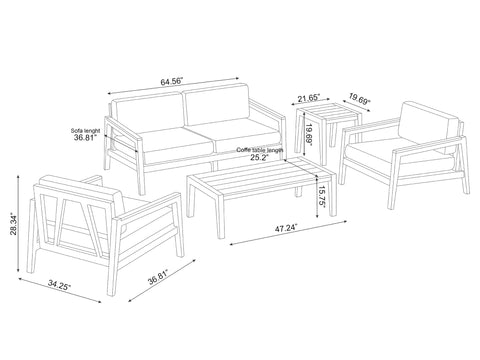 The Rhodes sofas can be paired with a coffee table, side table, ottoman, and umbrellas.