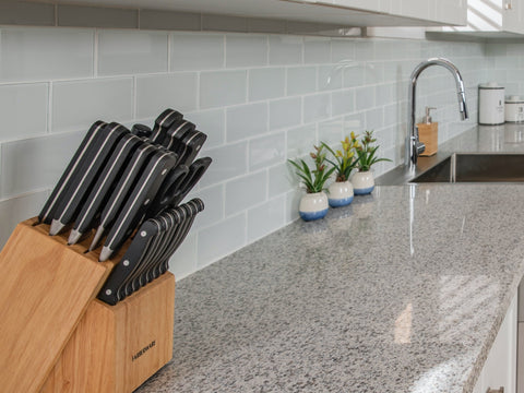 Available in a range of lengths, as well as three beautiful finishes, our granite countertops bring life-long style to your kitchen. Low maintenance but infinitely stylish, these are the final flourish when it comes to your dream kitchen. Choose from two stunning finishes; Pearl White or Gold Sand to complement the rest of your cabinetry. Our standard length matches the width of the cabinet exactly, while the extended length creates an overhang of 20mm on both sides to allow for the installation of side panels.